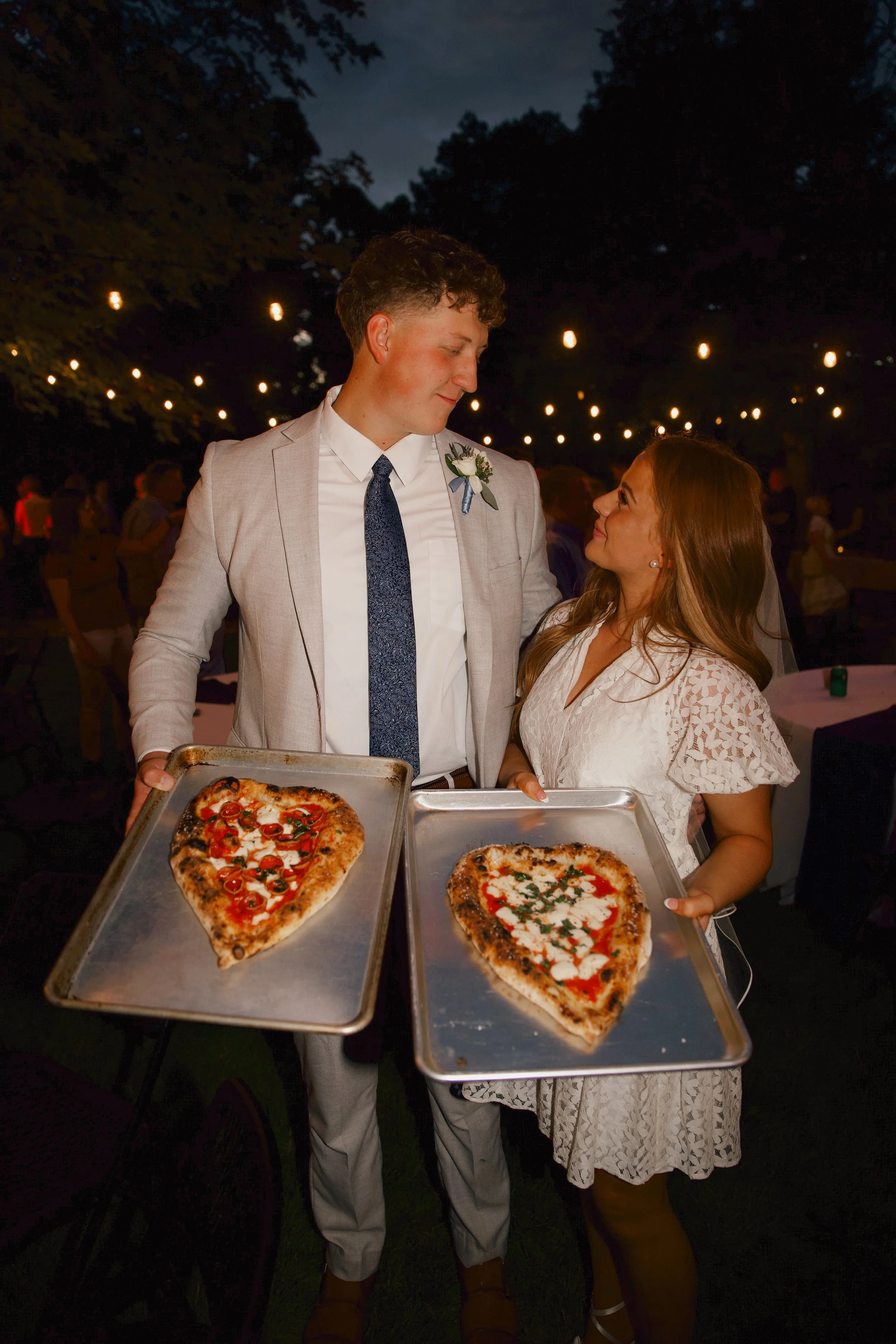 “We had Thirteen’s Pizza cater our backyard wedding, and it was honestly one of the best decisions we made. The setup was absolutely adorable, the pizza was SO good, and all night people kept coming up to us telling us how much they loved it. They even made heart-shaped pizzas for me and my (now) husband, which was the cutest touch ever and made the night feel so special. Everyone on their team was incredibly kind and professional. I truly couldn’t have imagined a better option for our backyard wedding!”